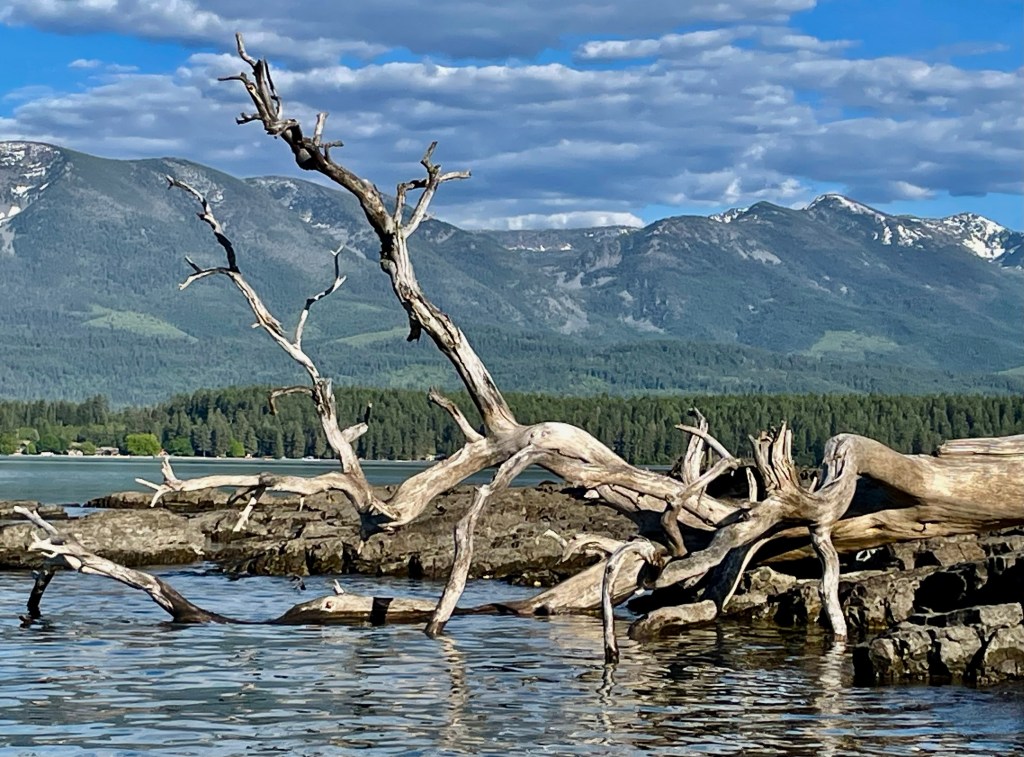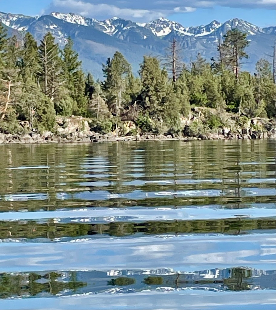 Wondrously, this radical openness to the flourishing of Life extended to the human realm. As I made a turn into the Finley marina, I could feel the sense of anticipation in a group of people who seemed to be preparing for a weekend wedding on the point. I felt the development of a deep bond between a muscular father pumping up an inflatable paddle board by hand and his son who watched his father’s every move. Then, as I began to load gear into the car, a woman approached me. She skillfully balanced offering information about her life on the edge of the Chiricahua Wilderness in Arizona with questions about the water temperature of Flathead Lake, how to pronounce Sel’ǐs Kasanka Qlispe’, and places to camp near shore. I knew more about places to camp than the pronunciation of Salish, though I did my best version of a glottal stop.