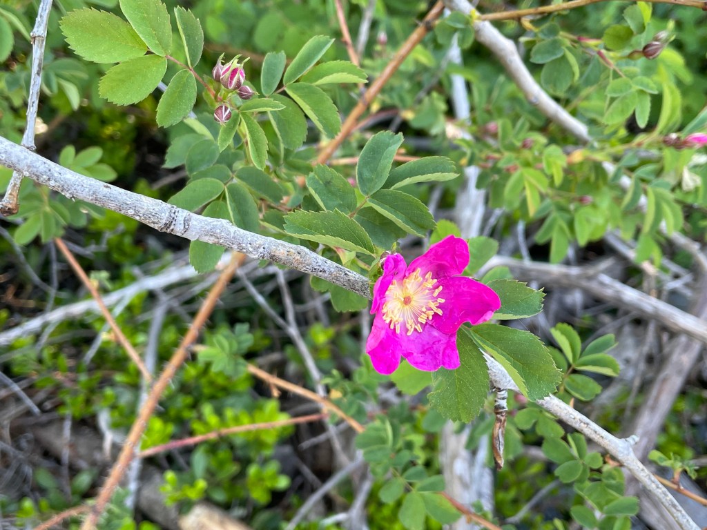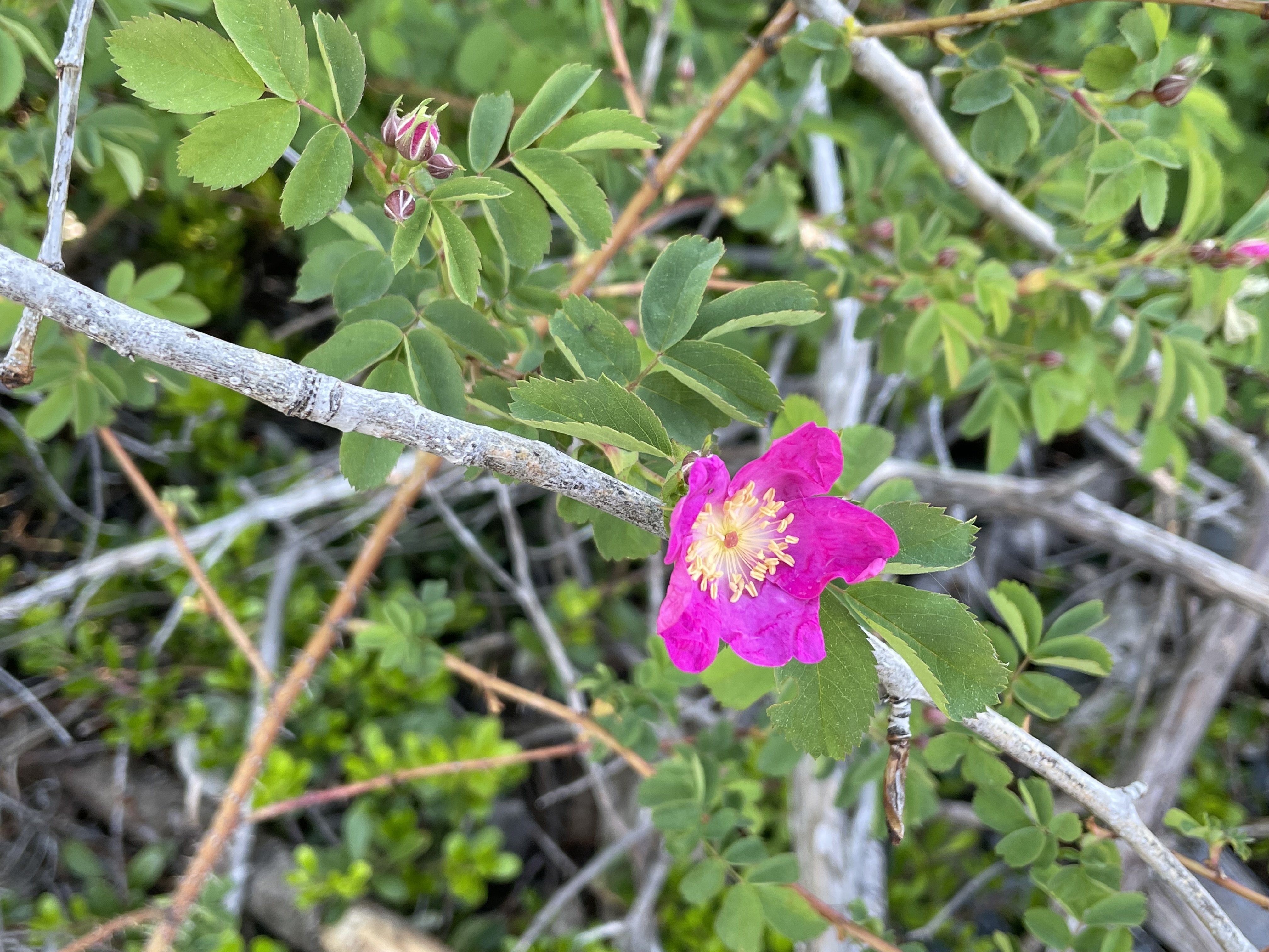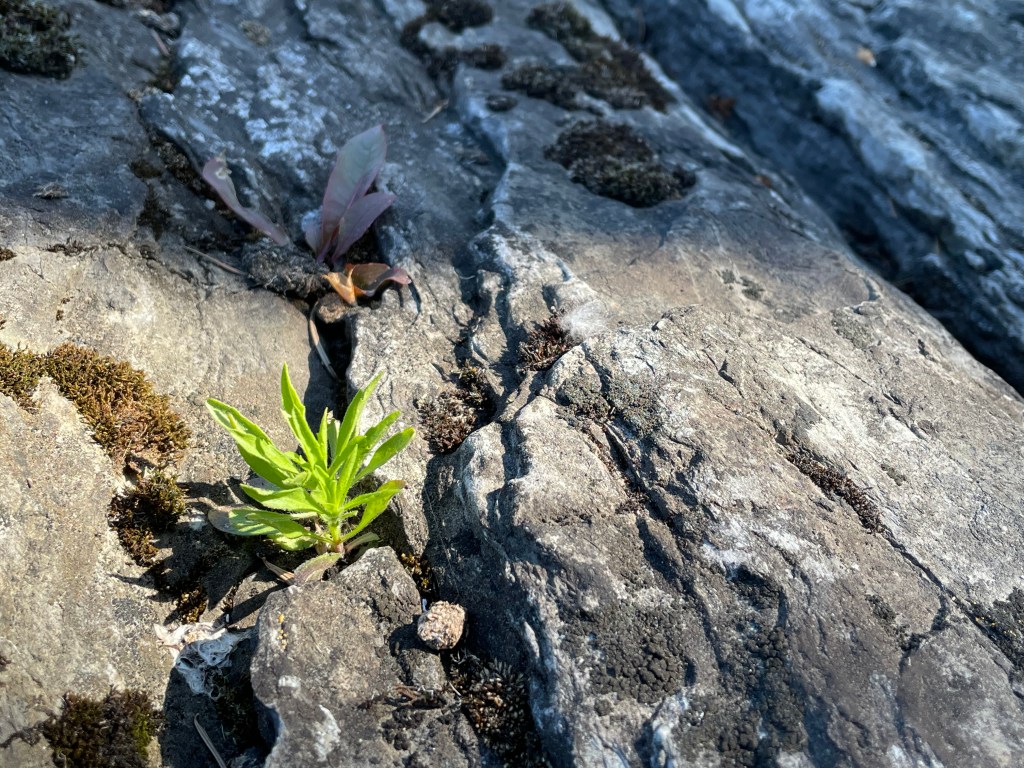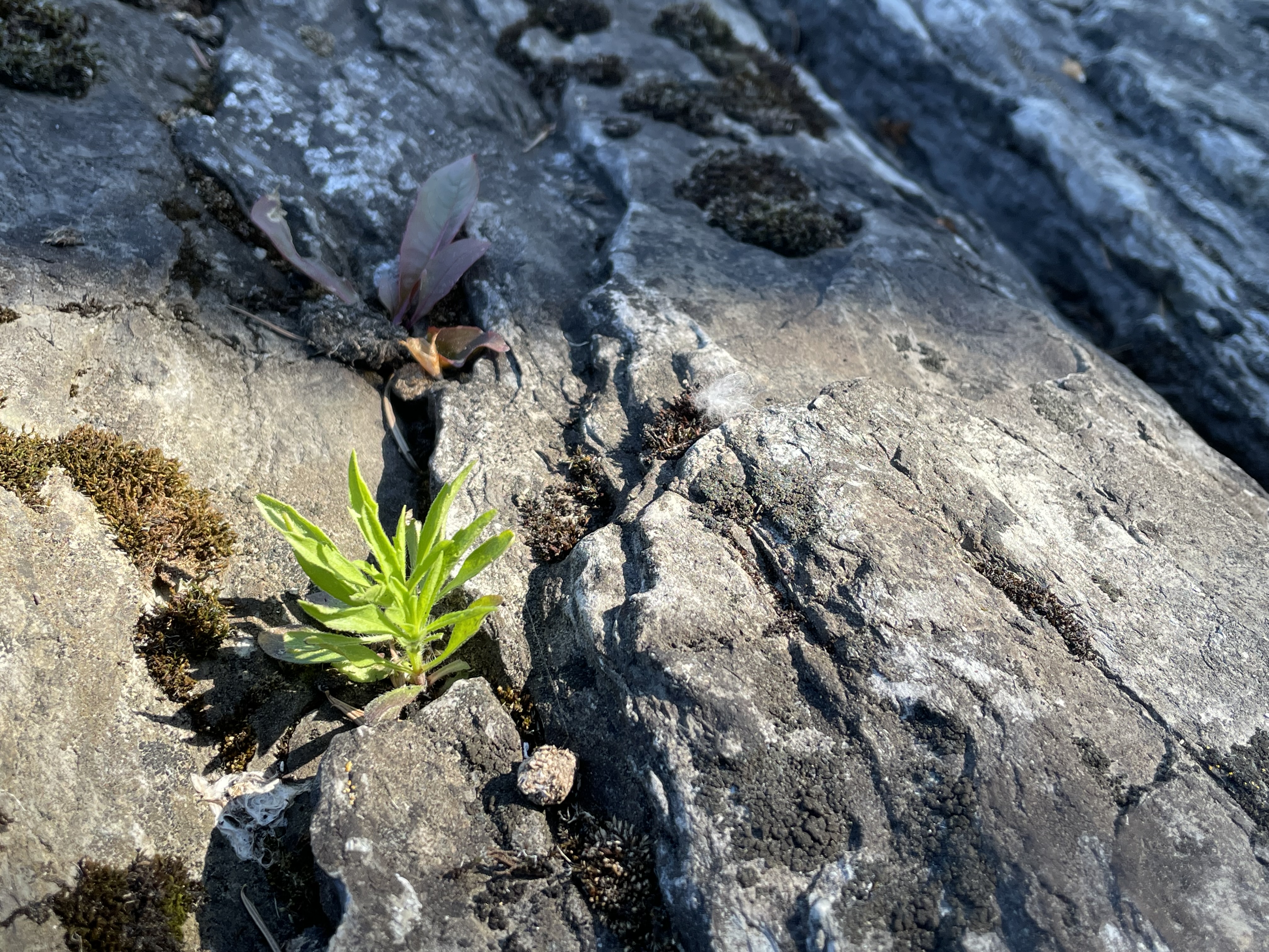 The next morning, launching from the state campground, I felt porous to the wonders of late spring before heat forced almost everything to become crepuscular. Here a pair of ospreys, there a pair of bald eagles. Here a plant growing, it seemed, out of stone,