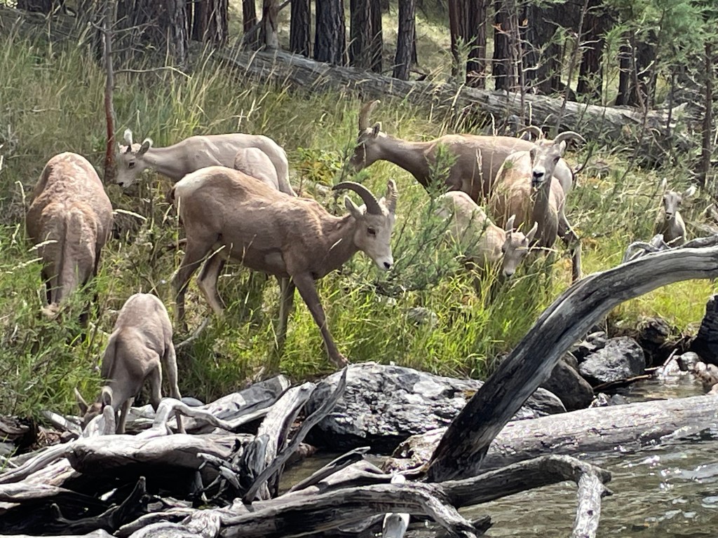 This was indeed a wonderful encounter with wild animals at close range as they went about addressing the business of hunger and thirst. But trying to take one of my spiritual practices into my daily life, I reminded myself to also notice the three boatloads of people watching the sheep.