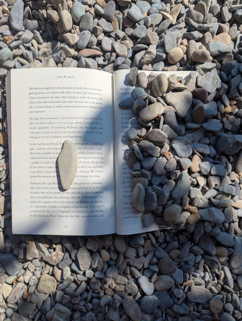 People in the audience described their experience of paddling a kayak in these terms, trusting the lake to bear and sustain them, the all-surrounding grace of buoyancy and wonder. When I read Levertov’s poem to the group, head nods and sighs told me they understood. This shared sensation is one of the reasons I keep returning to the lake.