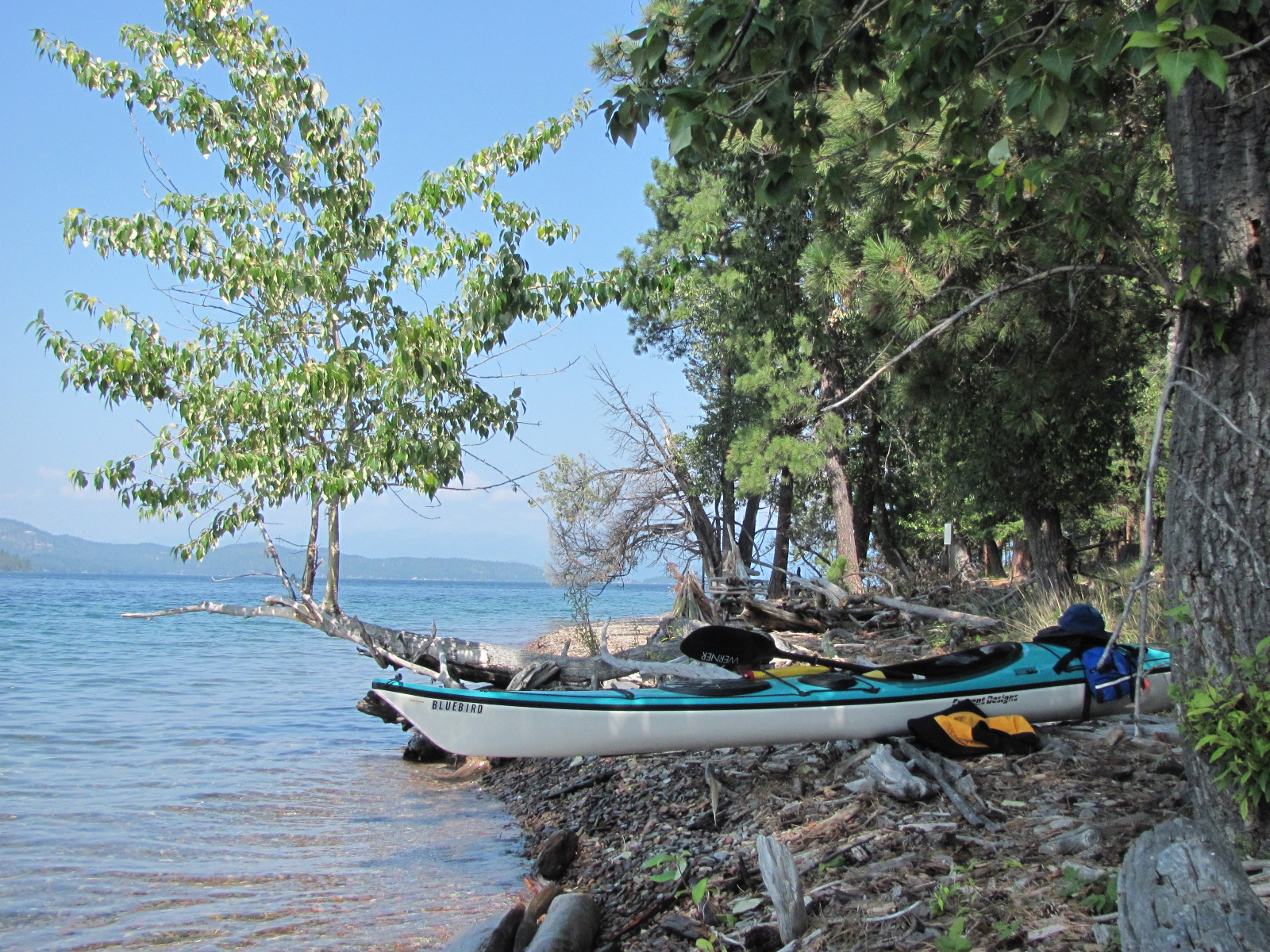 On August 16-17, a friend and I made one of my favorite mid-summer paddles. We put in at the Walstad Fishing Access point near Big Arm and paddled north against waves and wind past Wildhorse Island and then on to Cedar Island.