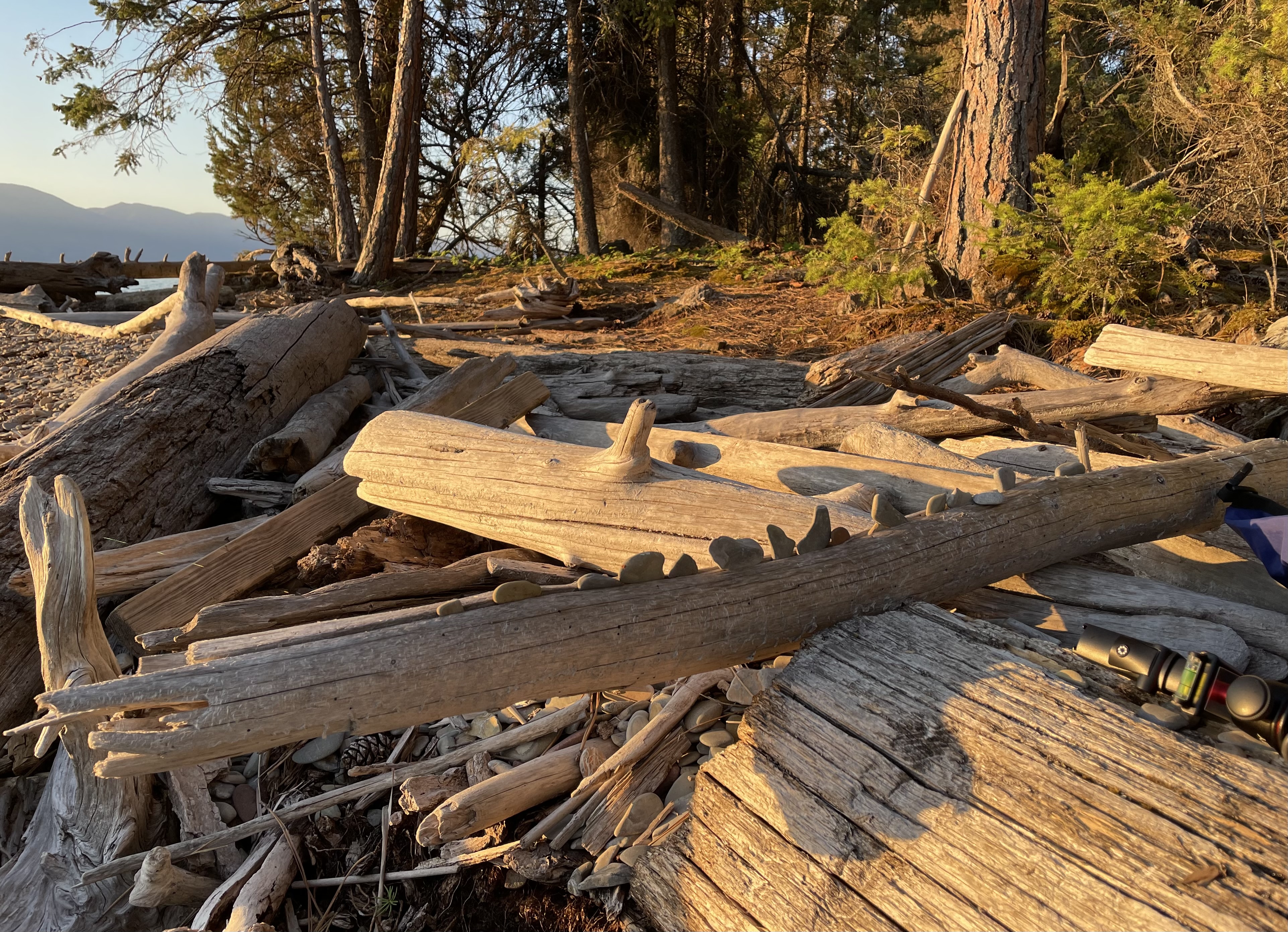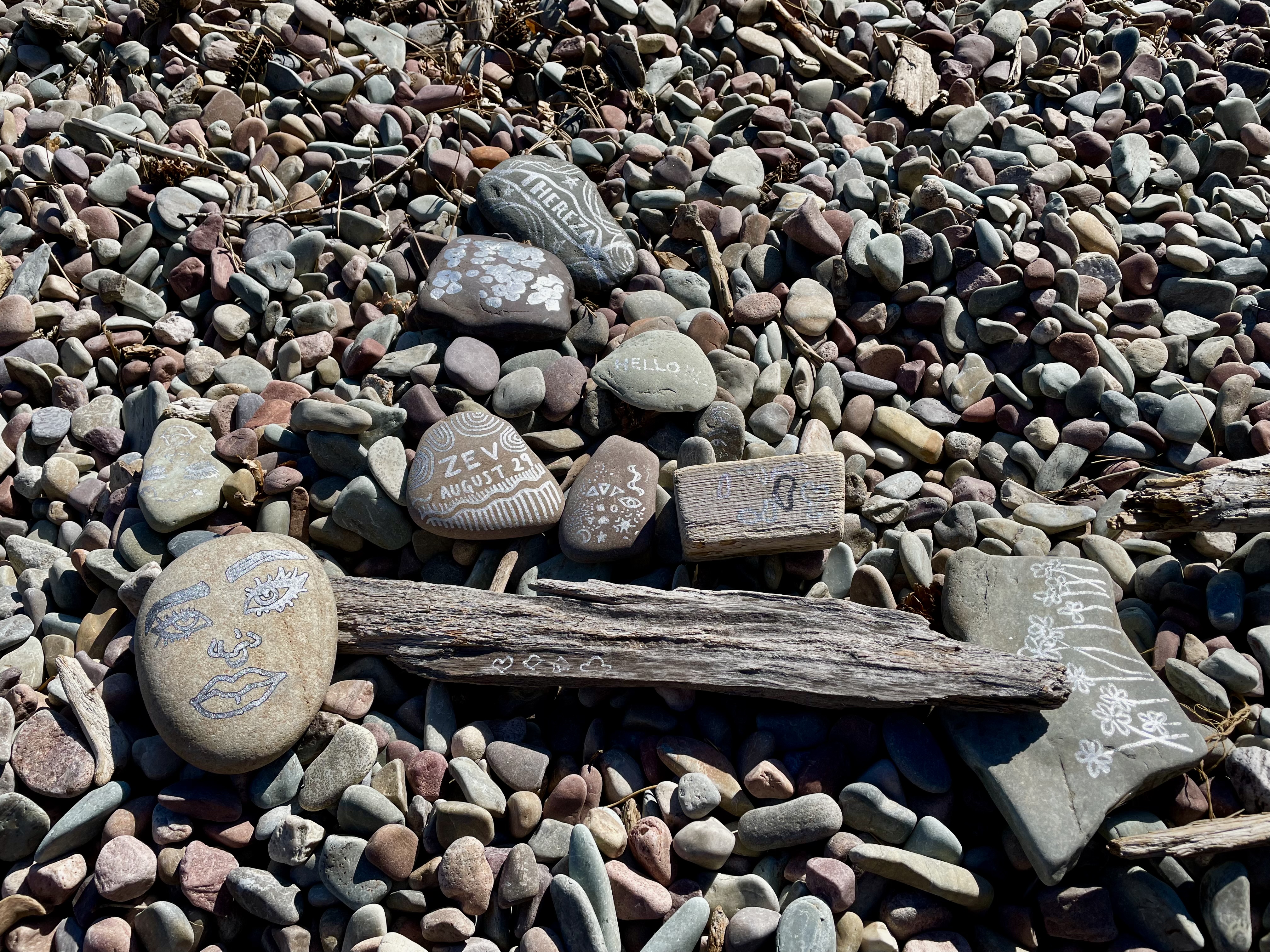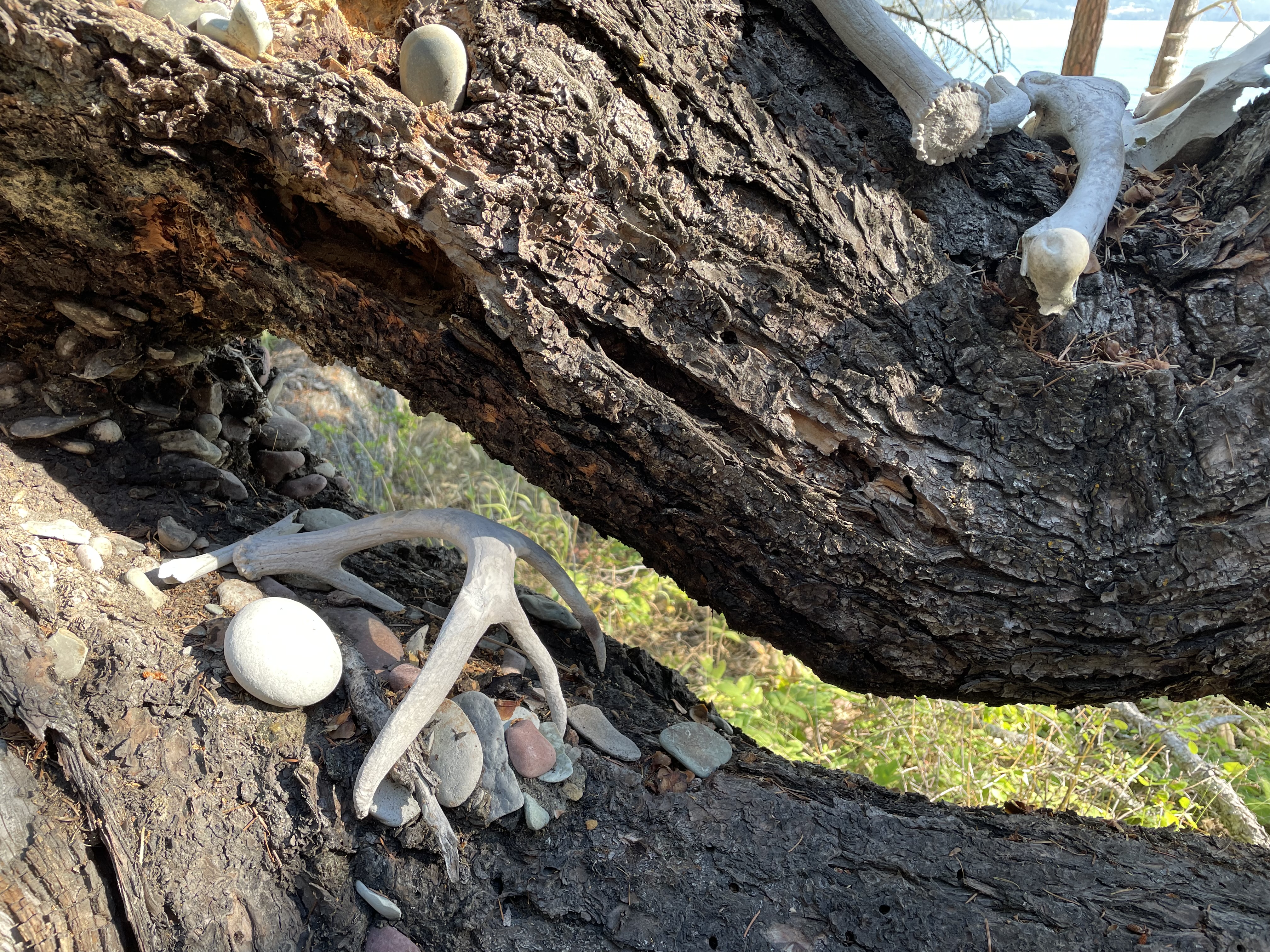 This time I noticed something else. In three different locations I saw imaginative expressions of human creativity in the use of natural materials. As if undistracted by technology and its trailing devices and cords, people, perhaps children, expressed themselves in wood, stone, and bone. In the absence of civilization, with space and time to imagine, something arises in us that lies dormant during hours of attachment to our screens.