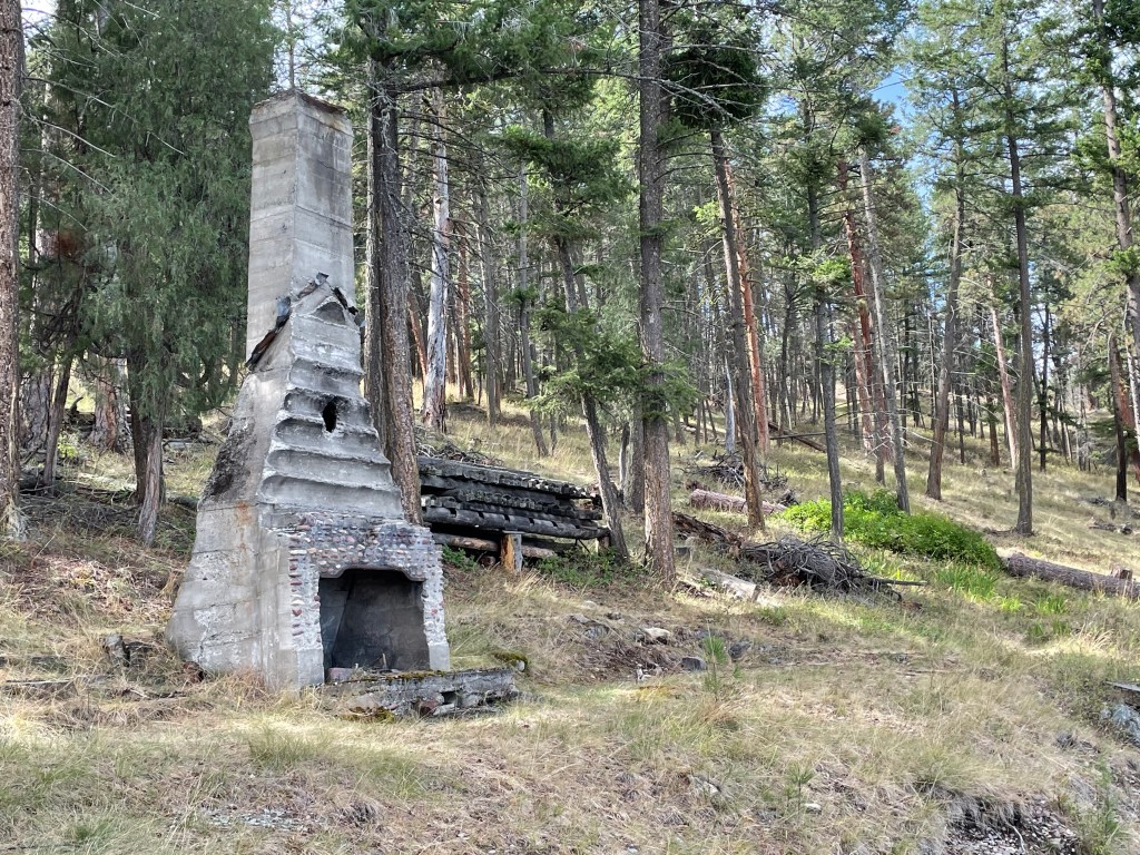 Hiking higher I saw massive pine trees thrown south by relatively recent storms. Dropping back toward the water I inspected more closely the chimney of a once splendid lodge that was built in a cantilevered fashion over the lake. The concrete had been poured against the log walls leaving horizontal flutes, and the face had been decorated with beautiful stones from the beach.