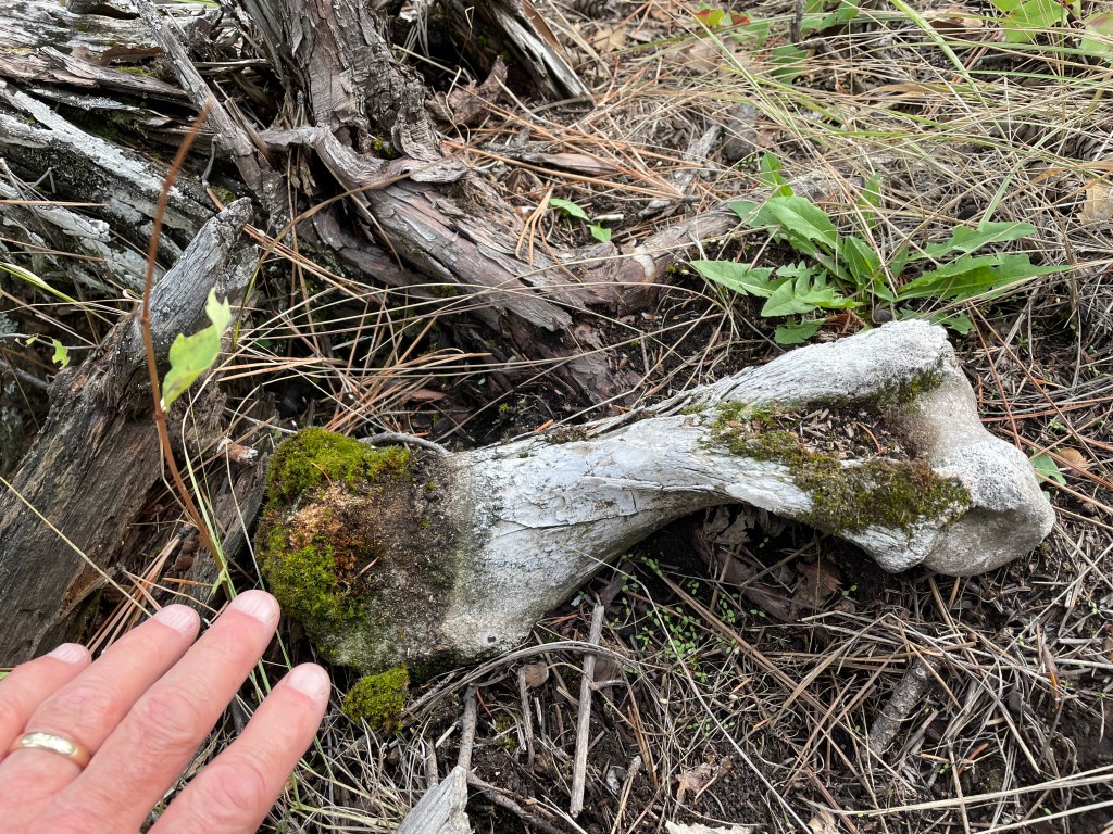 Climbing into the forest I immediately sensed the effect of more than an inch of rain. Within a day the patient mosses had swollen and recovered. Among the mosses I found the humerus of a horse that long ago had laid down its heavy bones.