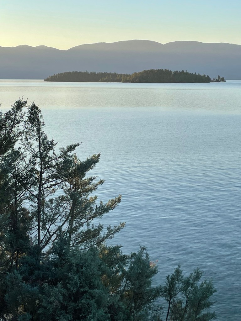 At home I almost take for granted the value of stillness. When I am still, the Black-throated and Calliope hummingbirds show up on the deck to sip from potted plants or the red feeder. When still, I am more likely to see the warbler in the willows or notice how early morning shadows make mounds of lavender even more beautiful. When still, the moon’s sudden appearance seems like its own kind of brass instrument. For three mornings the same was true at the lake.