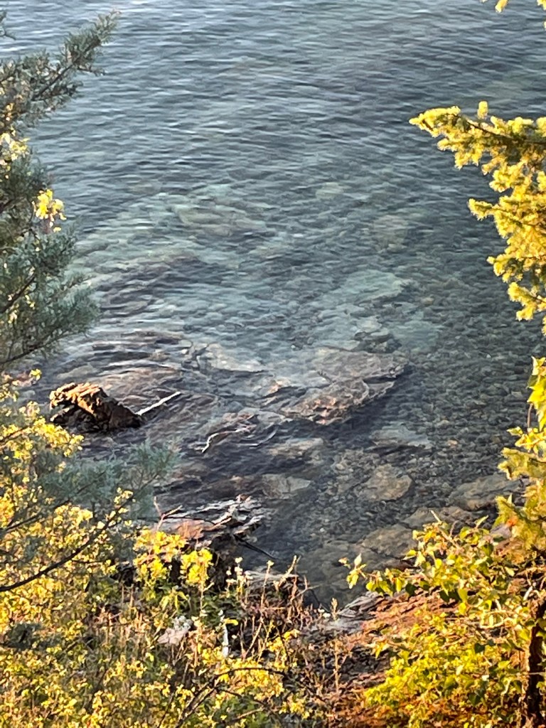 The margins of the lake are a part of the lake. They, like the water’s surface, are ever-changing, a palette for the shifting colors as one plant succeeds another, where Balsamroot gives way to lupine and then tall grasses, as green gives way to yellow and brown or the purple of asters. In addition to sounding brass we listened to little waves lap the shore. No longer trying to prove that I can cross the lake or paddle its length, I felt content being still on its edges.